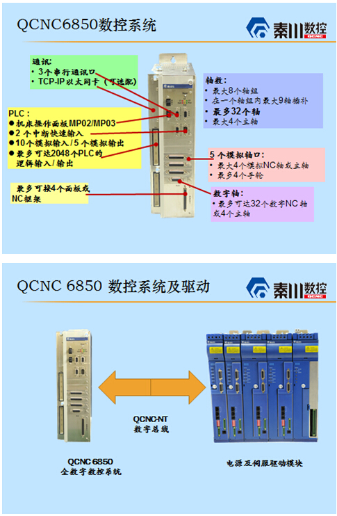 全數(shù)字?jǐn)?shù)控系統(tǒng)及伺服驅(qū)動系統(tǒng)簡化了連線,減少插頭數(shù)量,提高整個系統(tǒng)的可靠性。秦川數(shù)控QCNC6850數(shù)控系統(tǒng)的CNC和QDLU伺服驅(qū)動的緊湊型尺寸使它們更容易安裝在電氣柜中。