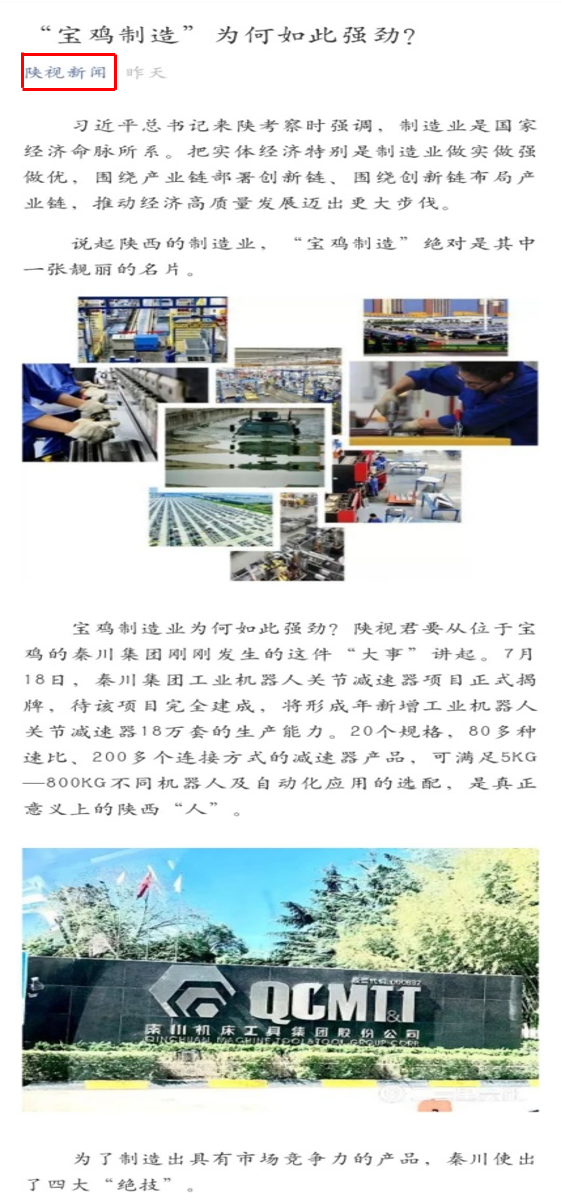 導(dǎo)讀:7月18日,秦川集團(tuán)工業(yè)機(jī)器人減速器數(shù)字化項(xiàng)目正式投用。機(jī)器人關(guān)節(jié)減速器產(chǎn)品是秦川集團(tuán)聚焦“五大戰(zhàn)略”和“5221”發(fā)展目標(biāo)——“高端制造”的重要內(nèi)容,是集團(tuán)精密制造、躋身國(guó)家先進(jìn)制造基地行列的又一力作。
